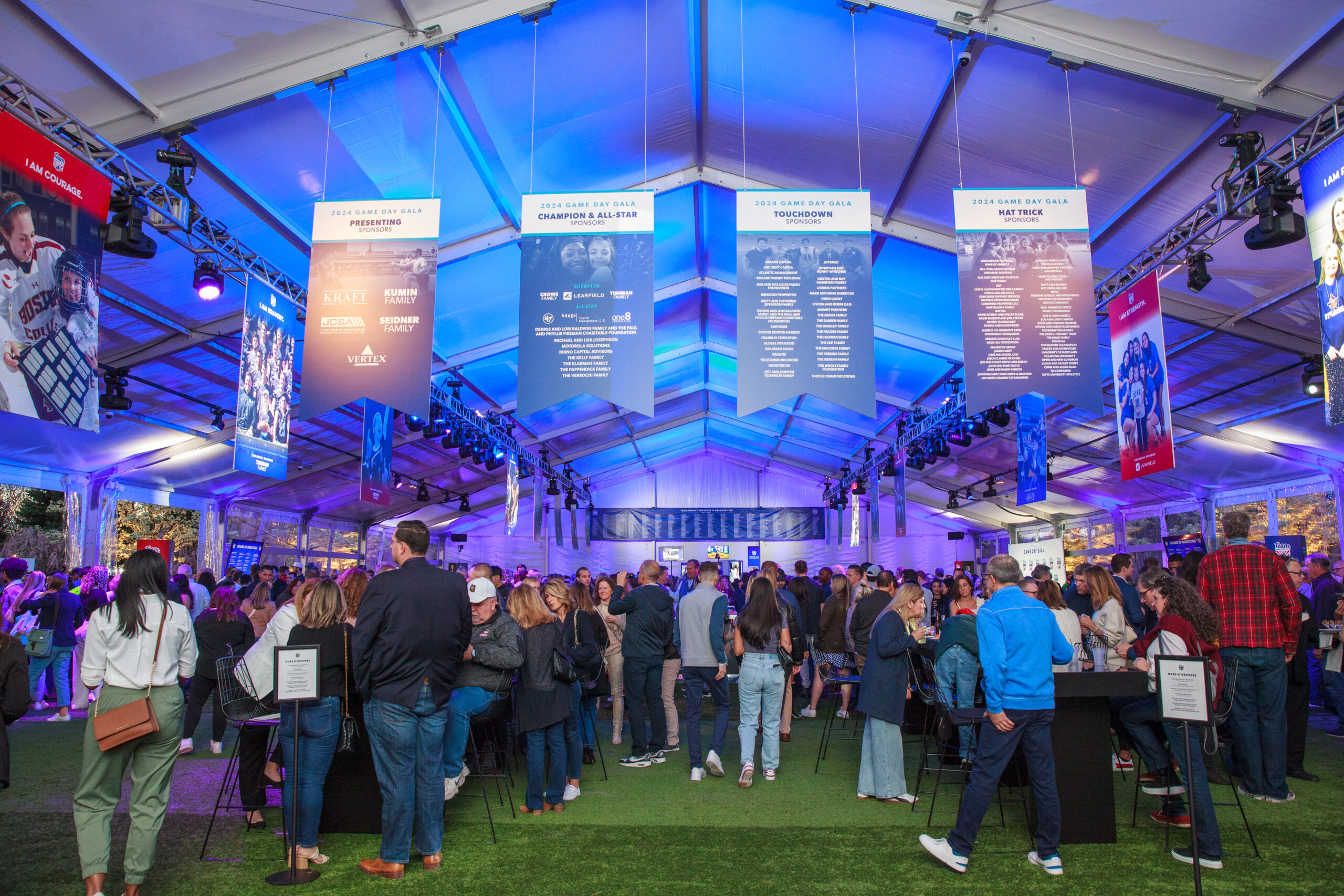 Castle provided event design, branding, and production support for the 2024 and 2025 galas and has been enlisted again for 2026. Hosted at Encore Boston Harbor, Castle transformed the space into a tailgate reception, dynamic program and post-game party, translating the concept and design into an immersive, end-to-end experience.